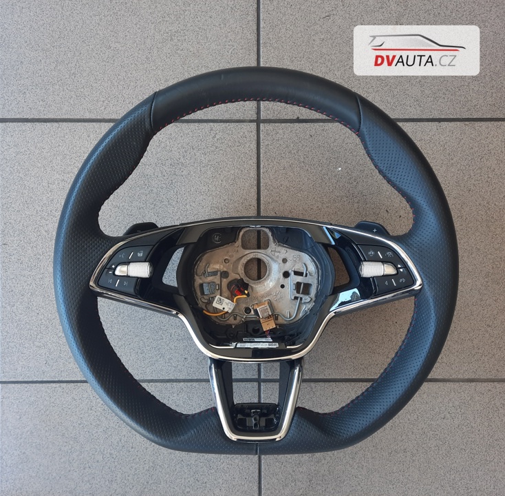 Multifunkční, vyhřívaný a sportovní RS volant na škoda Octavia IV RS 5E3419093AH s řazením za volantem. Cena uvedená bez kapacitní jednotky volantu.